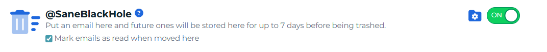 - Emails remain in SaneBlackHole for 7 days.